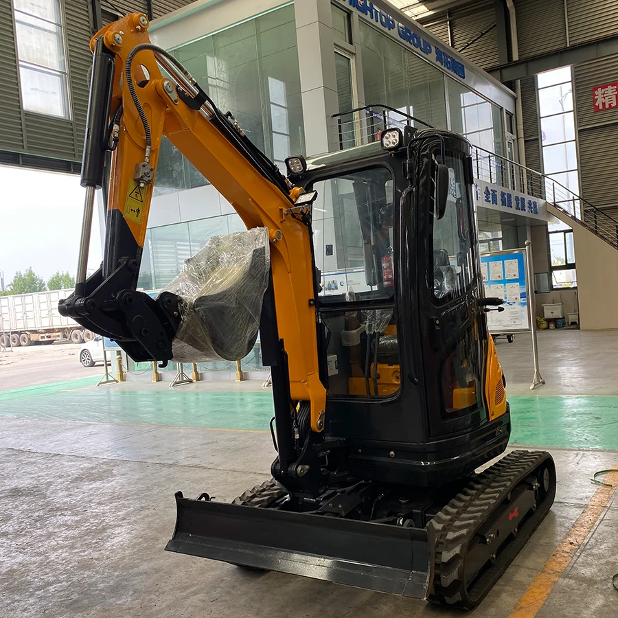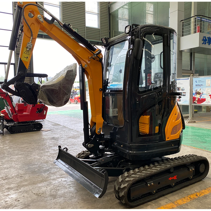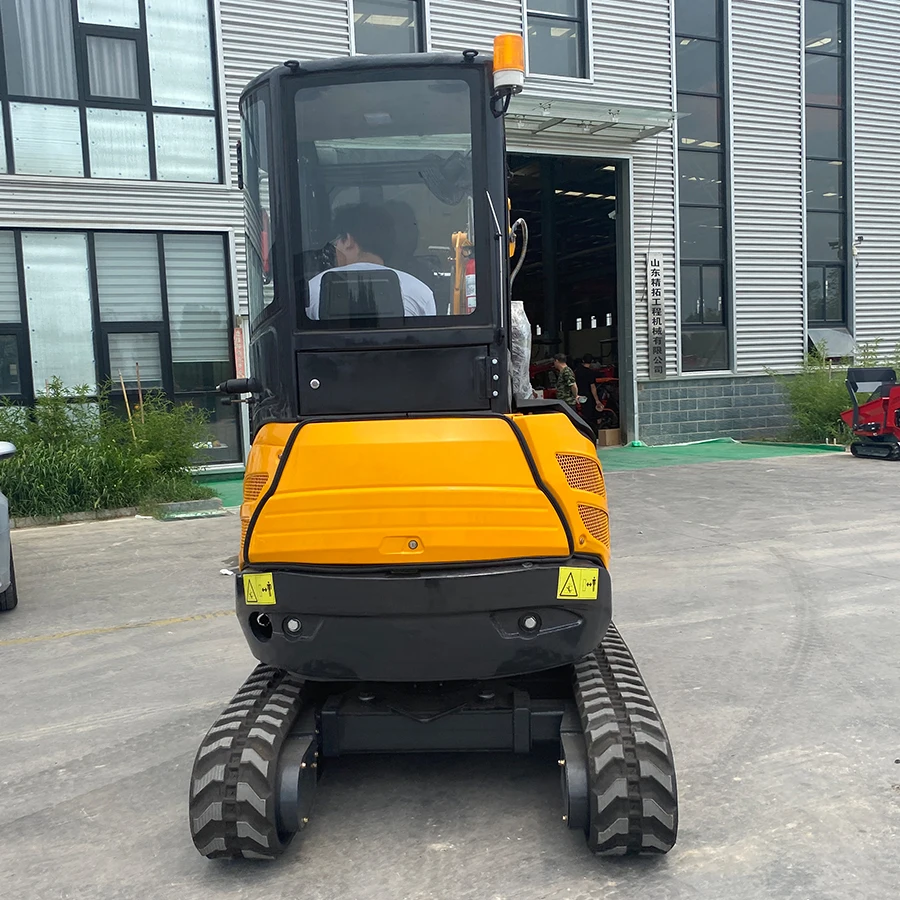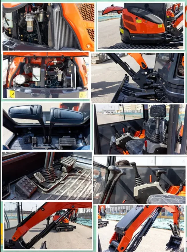 Гусеничният екскаватор е компактен екскаватор, съчетан с двигател KUBOTA , стрелата на екскаватора може да се върти наляво или надясно, подходяща за различни посоки на копаене за вашата работа, монтирана с главна помпа и клапани на известен бранд, монтирана с двигател за движение и въртене на международен бранд, хидравлична система с пилотен серво оператор, с гумени гусеници, със система за счупена тръба, използва хидравлична система с пилотен серво оператор, машината може да променя гусениците от гума на стомана и кабината от отворена към затворена. осигурява, че може да работи в различни работни среди и условия.