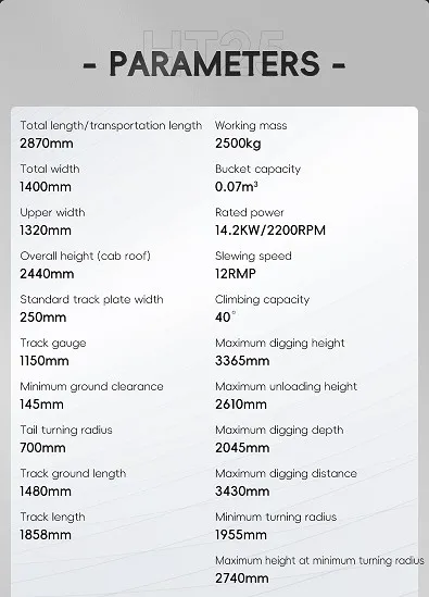 Технически параметри на мини екскаватор HT25 |