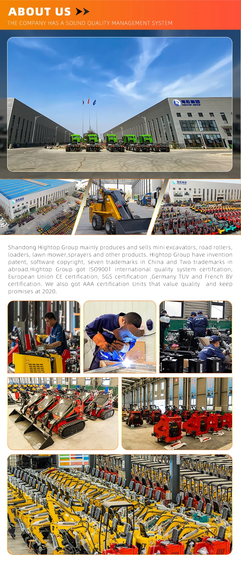 Биз, Hightop мини экскаватор жана мини skid steer loader өнүгүчүсү. Китайдын Шандонгда турат. Бардык мини экскаваторлору CE EPA даярдалgan. Экскаватор моделдери 0.8тоннадан 9тонна катынаштык экскаваторлор. Сиз өзүңүздүк жардам берген моделди таандыгыңыз мүмкүн. Биз машинин аныктыгы, конфигурациясы, дизайны жана башка субъекттерге чейин сураныштарды колдонобуз.