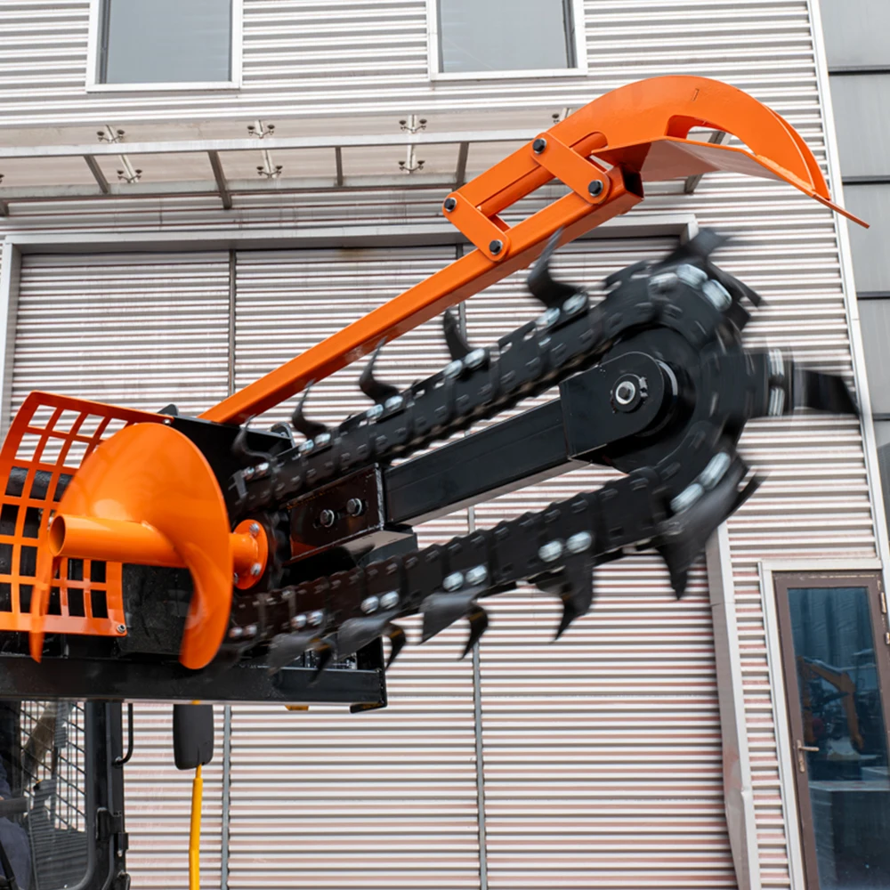 Skid Steer Loader Trencher Attachment 800 мм Траншеянын тереңдиги Ферма үчүн Траншея казу машинасы Гидравликалык Траншея казгыч