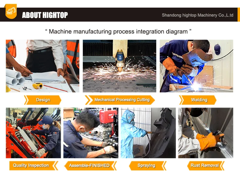 Shandong Hightop Group is een groep voor de productie van grote engineering- en bouwapparatuur, die wetenschappelijk onderzoek, productie en dienstverlening combineert. Het is gevestigd in de stad Jining, provincie Shandong, heeft een oppervlakte van meer dan 50.000 vierkante meter en telt meer dan 500 medewerkers. Hightop Group is een "Specialisatie, Precisie, Uniek, Vernieuwing" onderneming en is door de overheid aangesteld als een sleutelbedrijf. De Hightop Groep produceert en verkoopt minigravers, miniladers met zijwaartse uitlaat, wielladers, minikiepkorven, grasmaaiers, spuitmachines en andere producten. Hightop gravers staan al vijf jaar op rij op 1 in de exportmarkt van minigravers. Hightop producten worden voornamelijk verkocht in Europa, Noord-Amerika, Zuid-Amerika, Zuidoost-Azië en vrijwel over de hele wereld. Hightop heeft 10 buitenlandse magazijnen in de wereld, waaronder 2 in de Verenigde Staten, 1 in Duitsland, 1 in het Verenigd Koninkrijk, 2 in Spanje, 2 in Polen, 1 in Rusland en 1 in Saoedi-Arabië. Voor Hightop is kwaliteit het leven, technologische innovatie is de levenskracht, excellentie is de geest. Tot nu toe heeft de Hightop Groep 28 nationale patenten, 21 handelsmerken en 3 auteursrechten verkregen, en is gecertificeerd volgens ISO 9001 CE, SGS, Duitse TÜV en Franse BV om zo aan de eisen van de internationale markten te voldoen. Wij geloven dat wetenschap en technologie de wereld zullen veranderen. In de toekomst zal Shandong Hightop Group blijven streven naar een internationaal topmerk van graafmachines en een topleading bedrijf, en zal het een bijdrage leveren aan de samenleving, waarde creëren voor klanten en geluk brengen voor de medewerkers.