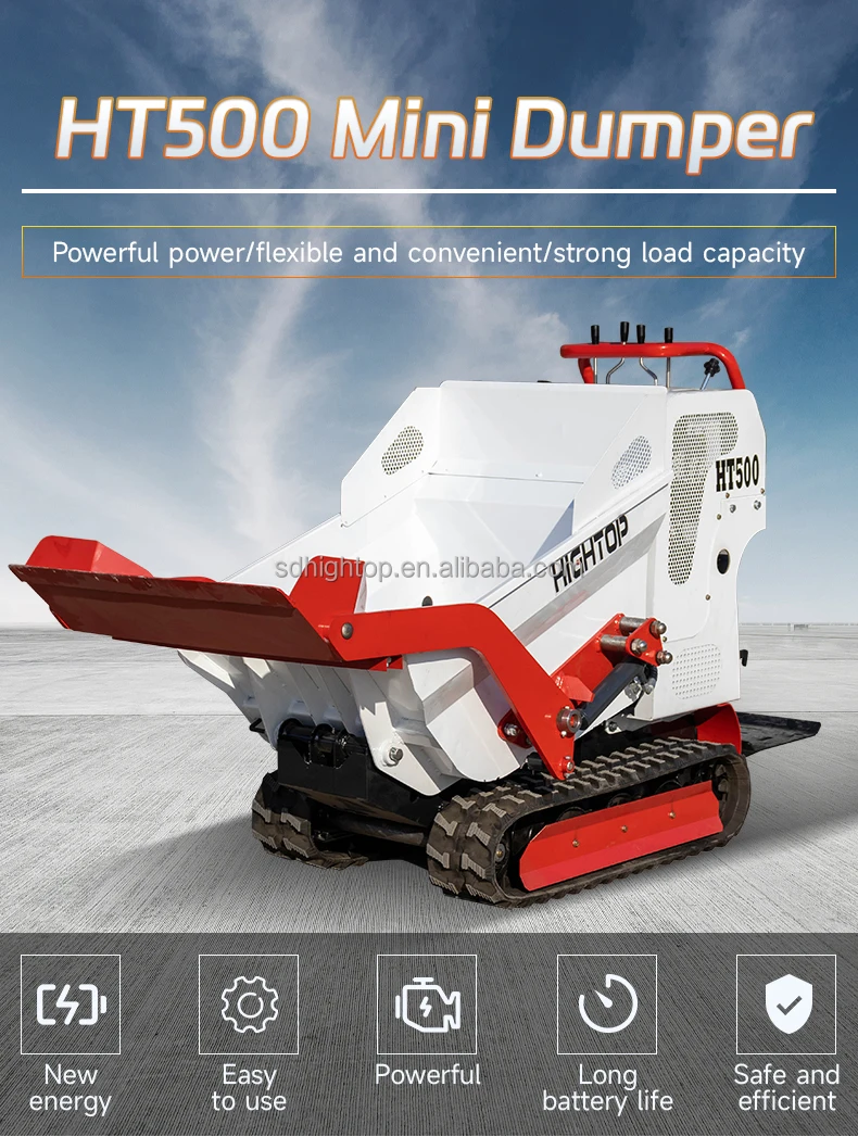 HIGHTOP HT1300T Mini Hydraulisk Dumphjul Small Mini 1,3 Tonns Dumper Med Bensinmotor Og EPA Euro 5