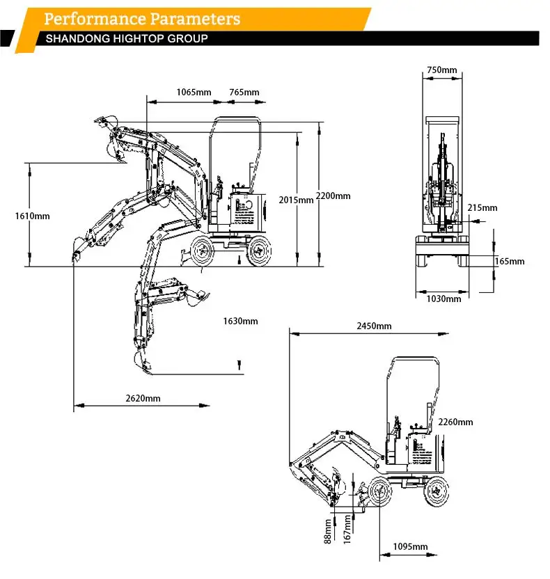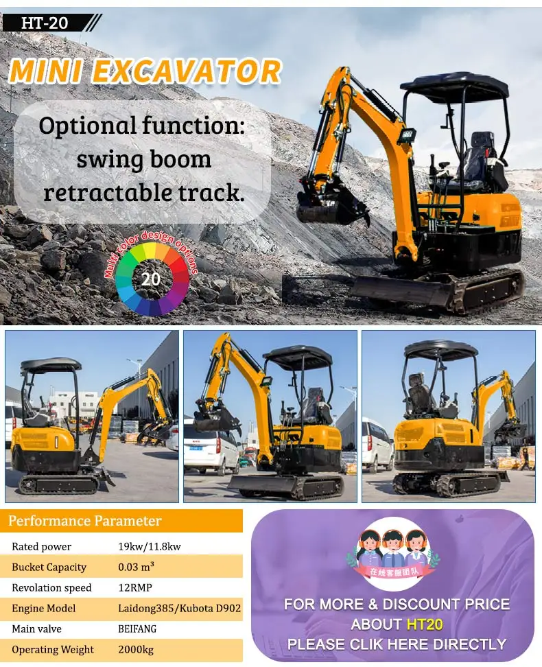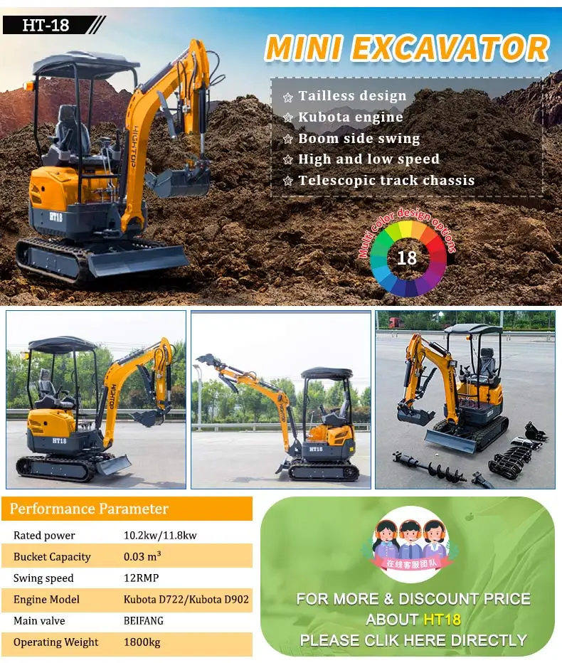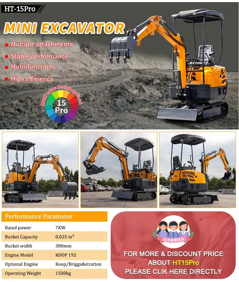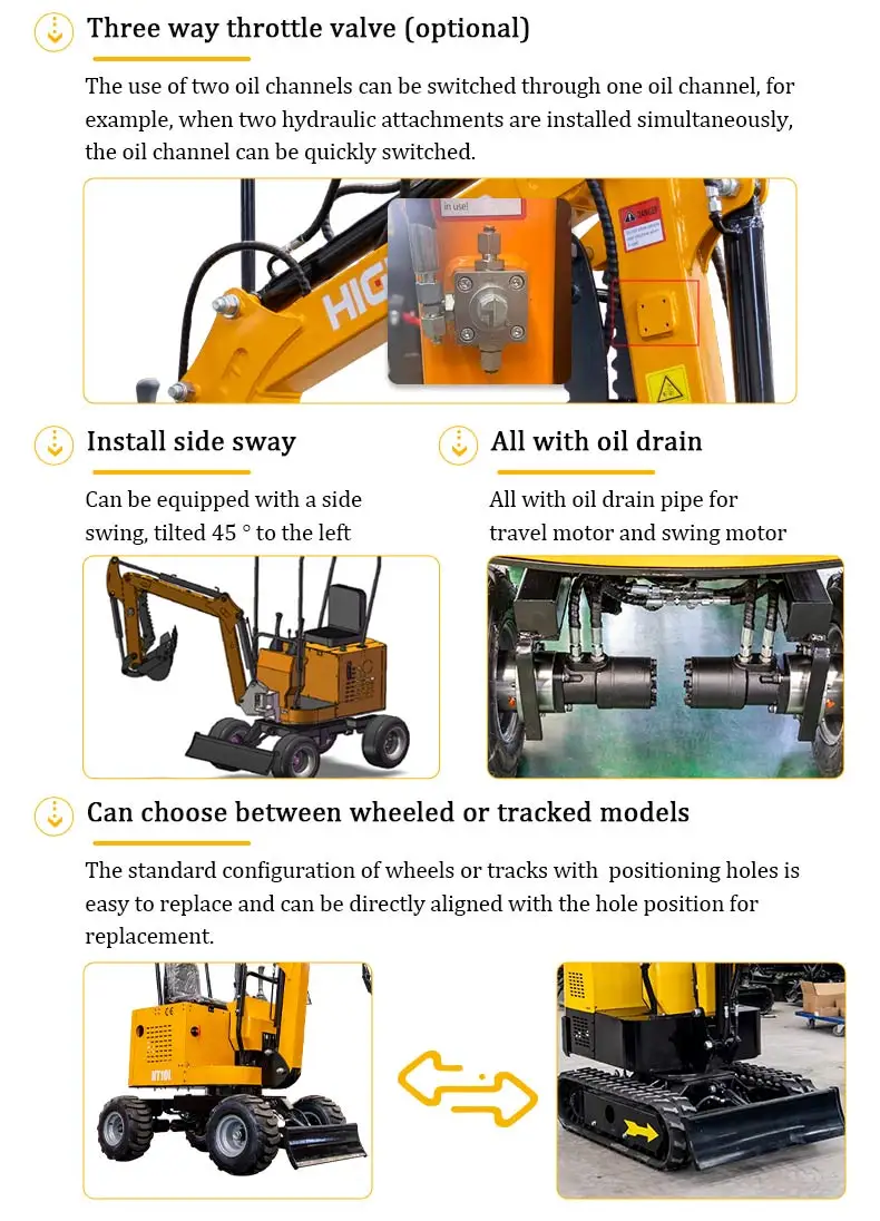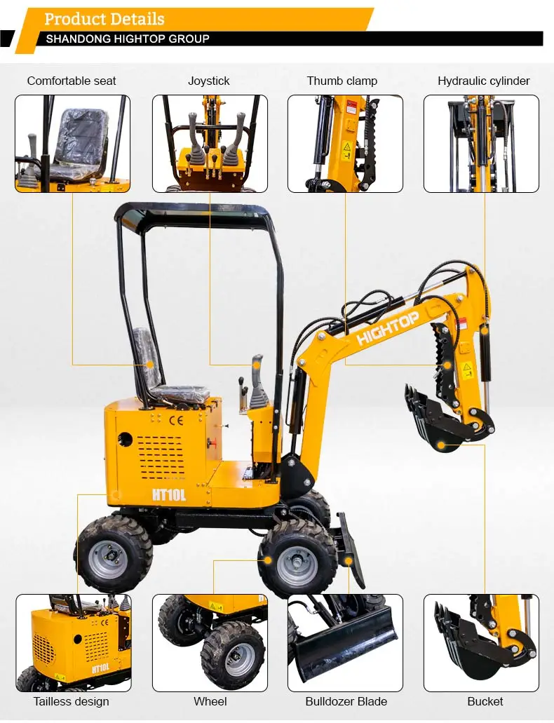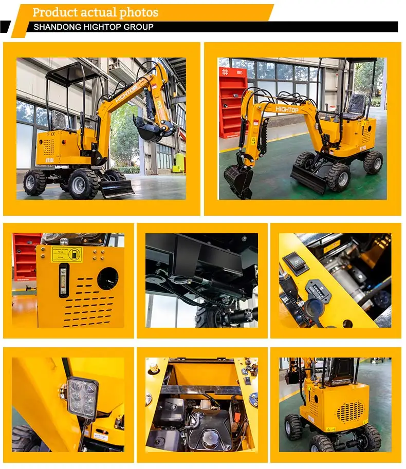 Chiński minikopark 1 tonowy Epa Silnik benzynowy Kołowy koparka maszyny z osprzętem do koparki