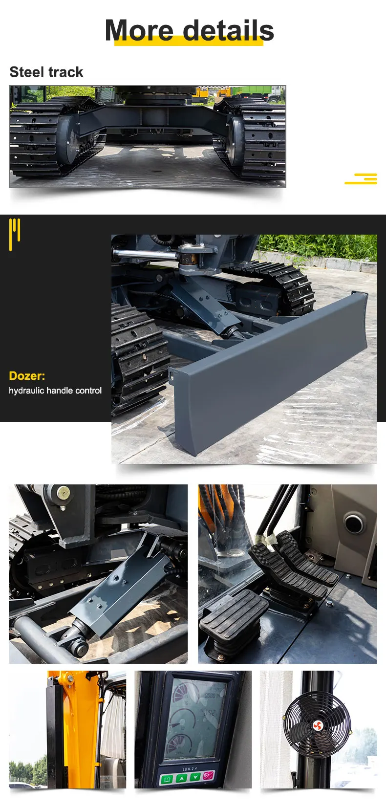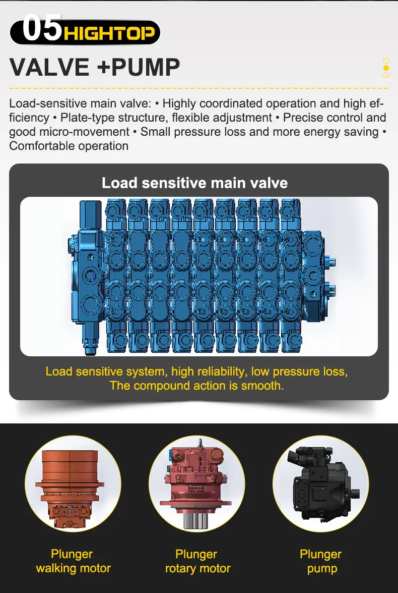 4) Vrtilo, grablja, hidraulički čekić, uski škare mogu se montirati na ovaj kopar, efikasan i širokopregledno upotreba.