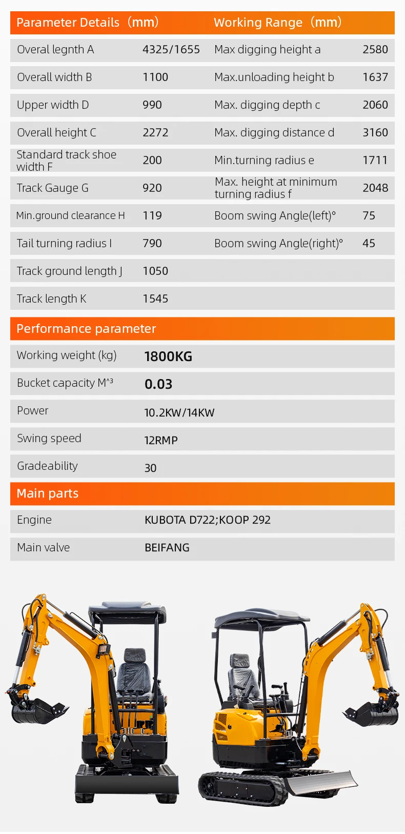 Кинески гусенични екскаватор за продају 1,8 тона 2 тоне микро утоваривач 1800кг делови мини екскаватора