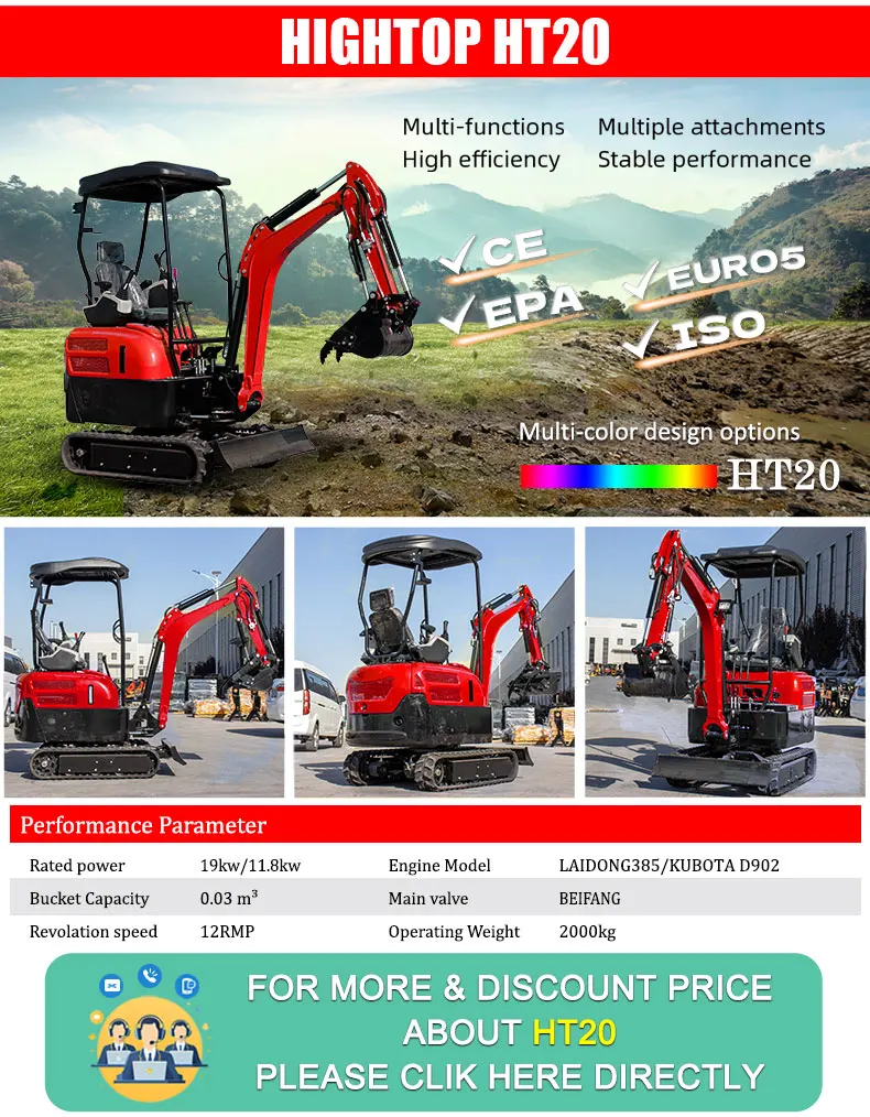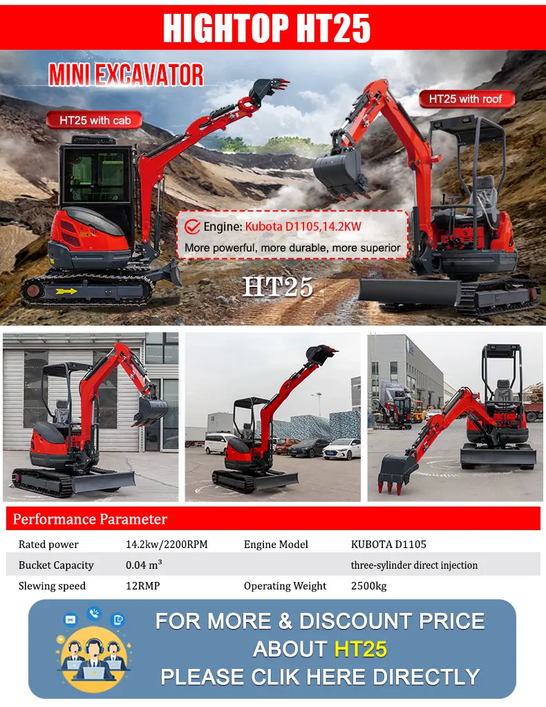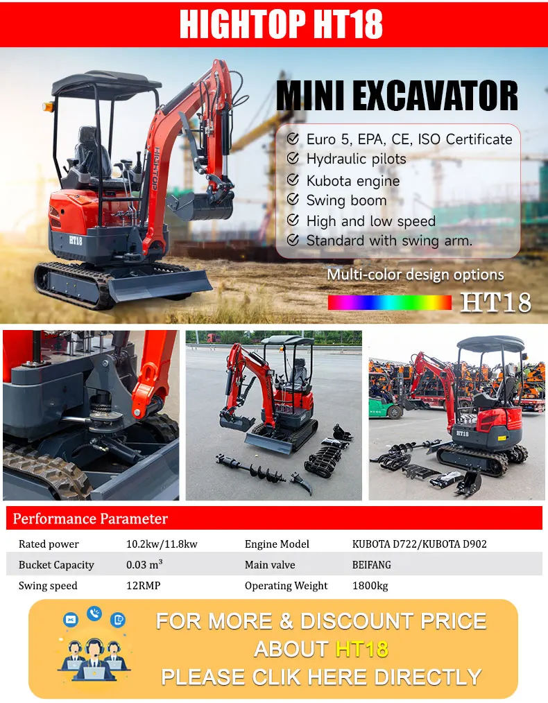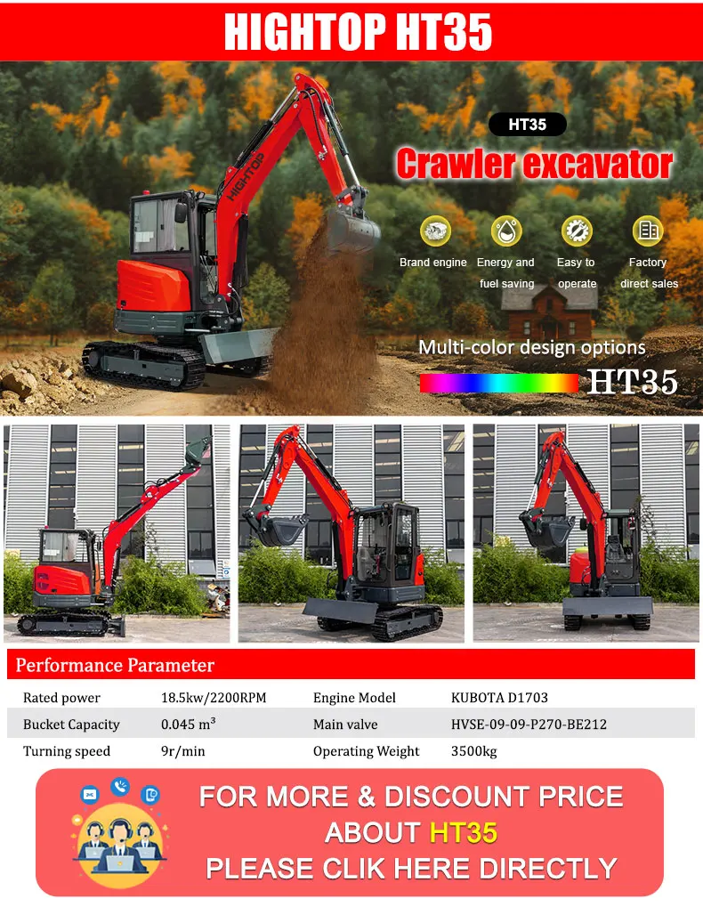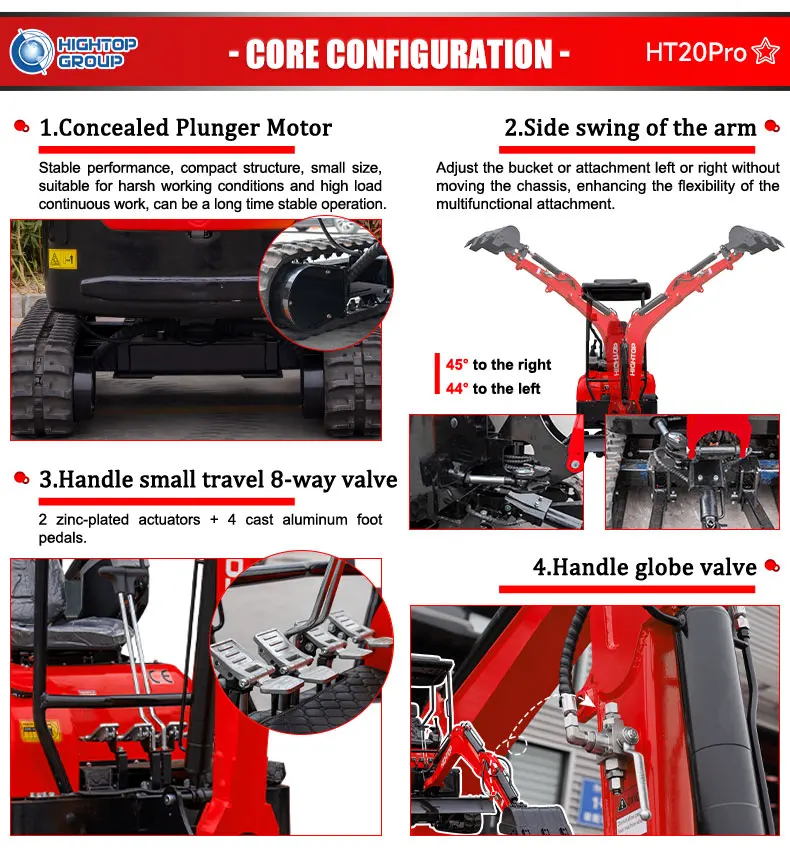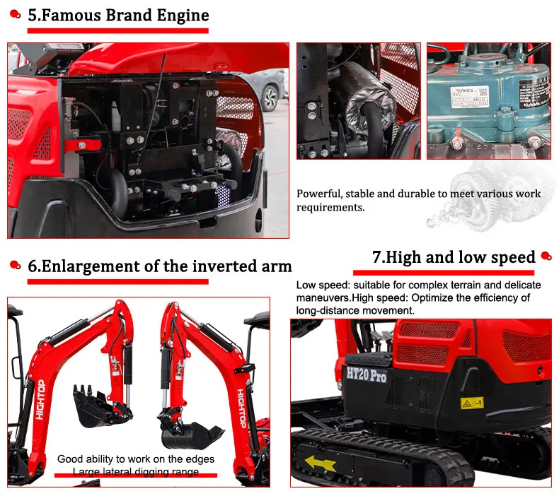 Произвођач мини багера и мини фронтних убацивача HIGHTOP, седиште у Шандонгу, Кина. Сви наши мини багери су CE EPA одобрени. Модели багера од 0,8 тона до 9 тона гусеничара. Можете изабрати одговарајући модел који вам треба. Подржавамо разне