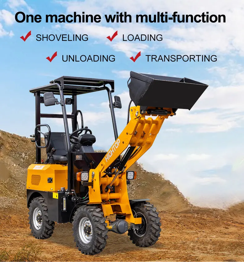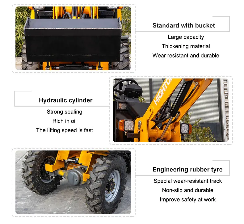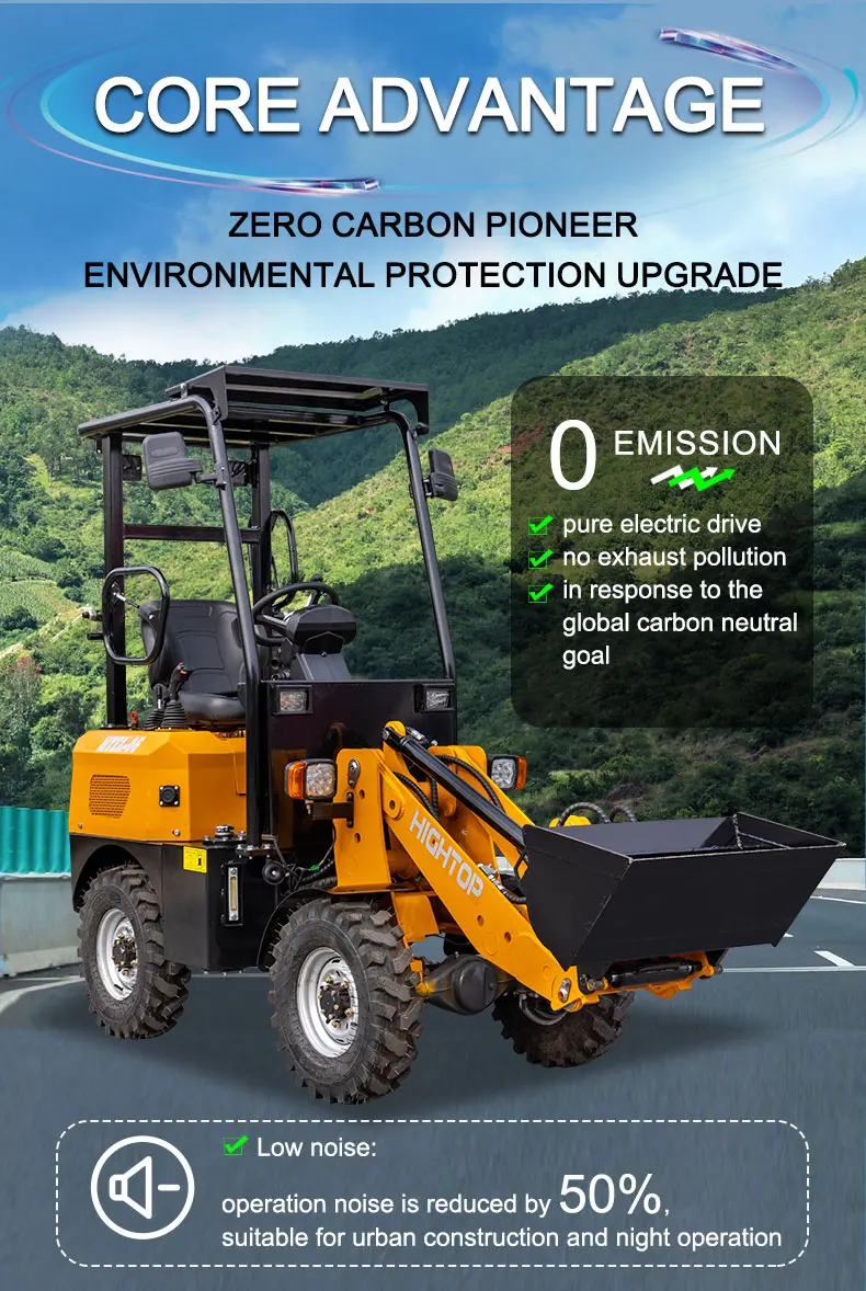 1320 kg Mini Små Kompakt Baggbagge Framaxel Driven Ellyftande Hink Skopa Kompakt Elektrisk Hjullastare Pris